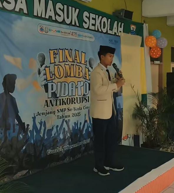 SAMBAS MEDIA, CIMAHI – Final Lomba Pidato Antikorupsi jenjang SMP Se-Kota Cimahi yang dirangkaikan dengan kegiatan Jaksa Masuk Sekolah dilaksanakan di SMP Wiyata Bakti, Senin 1 Desember 2025.