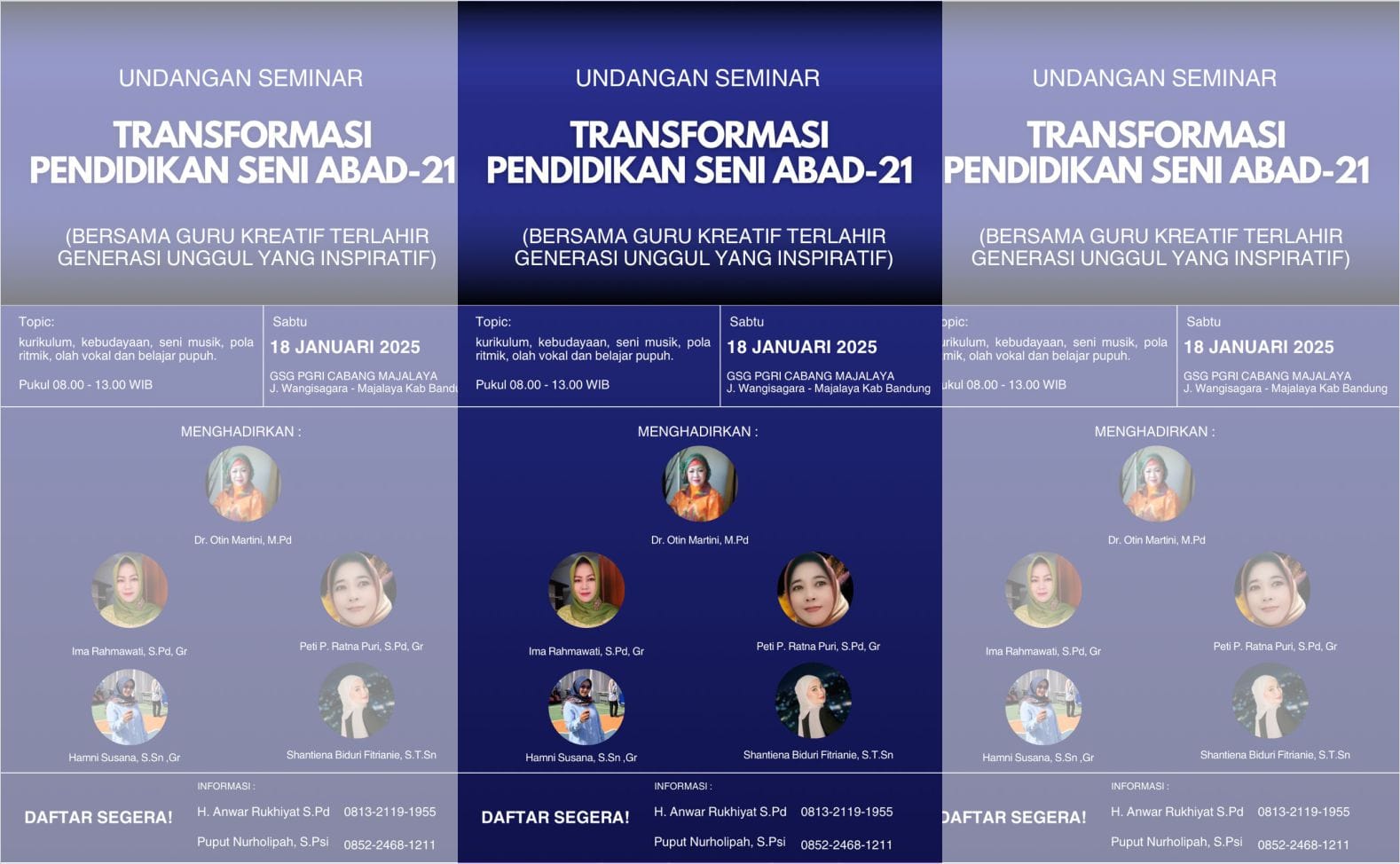 Seminar ini diinisiasi oleh empat mahasiswa Pascasarjana Pendidikan Seni tahun akademik 2024/2025, bekerja sama dengan dosen pembimbing mereka, Dr. Otin Martini, M.Pd. Mereka tidak hanya berperan sebagai penggerak acara tetapi juga sebagai fasilitator dalam sesi pelatihan yang menjadi bagian dari rangkaian kegiatan seminar.